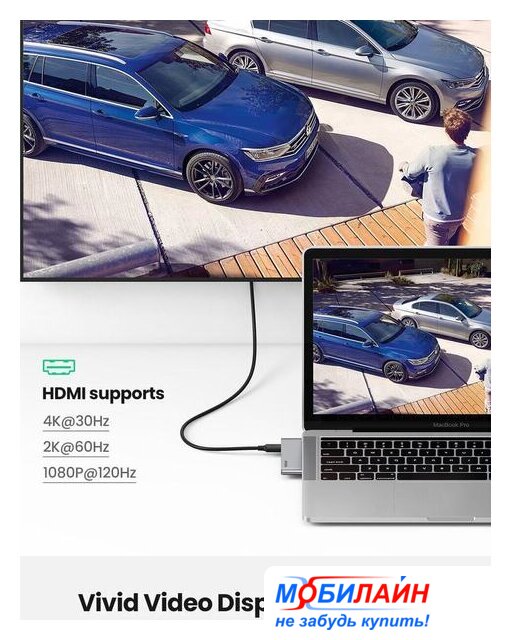 подключение по USB-C, 2 x USB-A, 2 x USB-C, видео до 4K 30 Гц, питание USB-C PD до 100 Вт, LAN-адаптер 1000 Мбит/с, кардридер, корпус металл