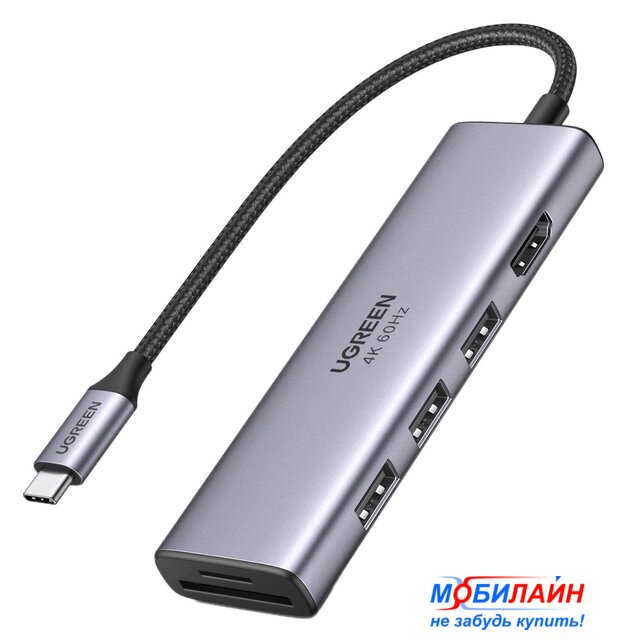 USB Type-A 3.2 Gen1 (5 Гбит/с)/USB Type-C/HDMI, 3 порта, OTG, пассивное питание, картридер SD/SDHC/SDXC/microSD/microSDHC/microSDXC, цвет серый