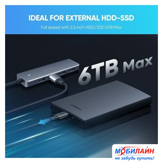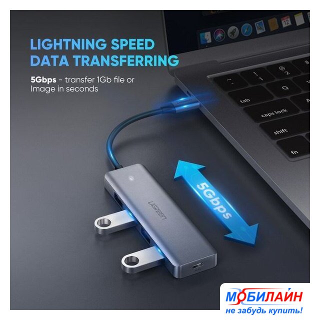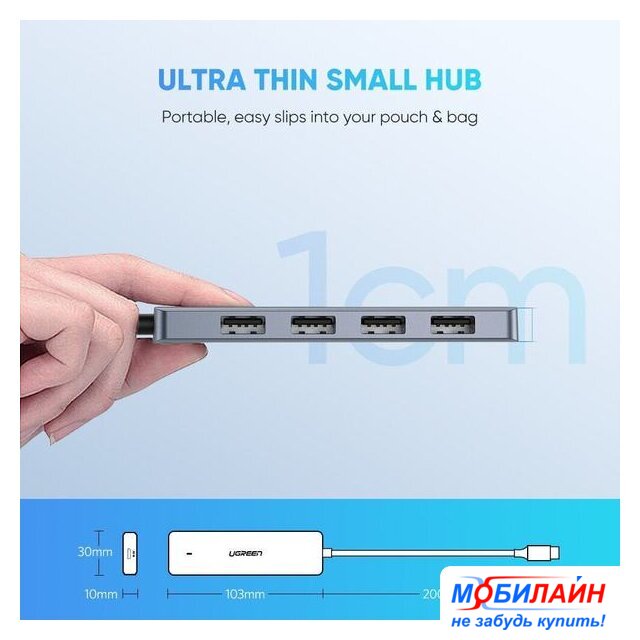 USB Type-A 3.2 Gen1 (5 Гбит/с), 4 порта, пассивное питание, кабель 0.15 м, цвет серый