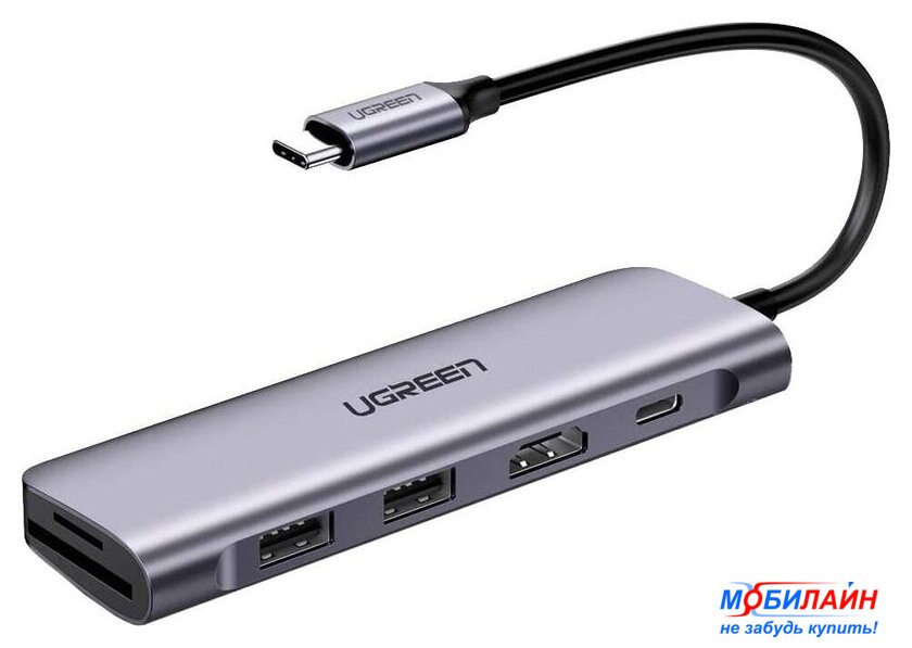 USB Type-A 3.2 Gen1 (5 Гбит/с)/USB Type-C/HDMI, 2 порта, пассивное питание, картридер SD/SDHC/SDXC/microSD/microSDHC/microSDXC/MMC, кабель 0.2 м, цвет серый