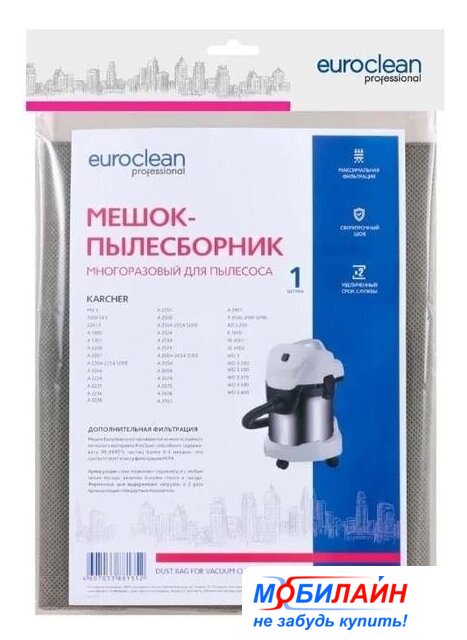 многоразовый мешок для пылесоса Columbus, Comac, Delvir, Einhell, Eurocraft, Fakir, Hyundai, Lorito, Nilco, PIT, Victor, Wetrok, Зубр; 1 шт