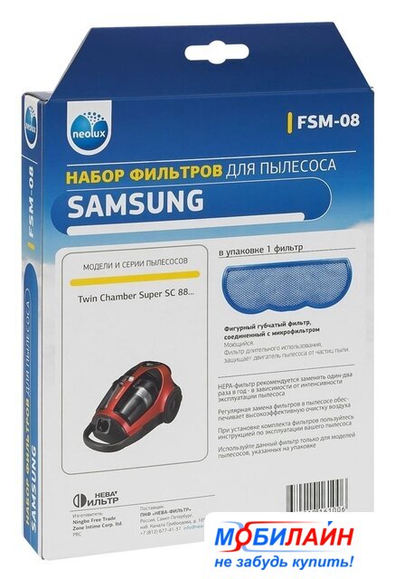 Комплектация | - моторный фильтр для безмешкового пылесоса |