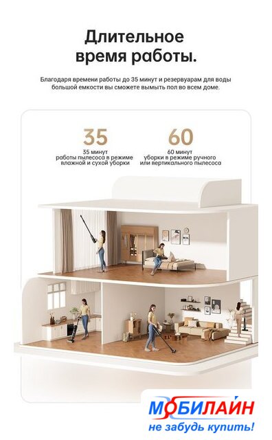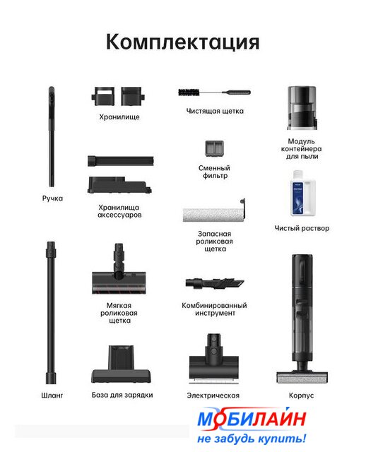 вертикальный моющий, аккумулятор, регулировка мощности, турбощетка, док-станция с самоочисткой и зарядкой