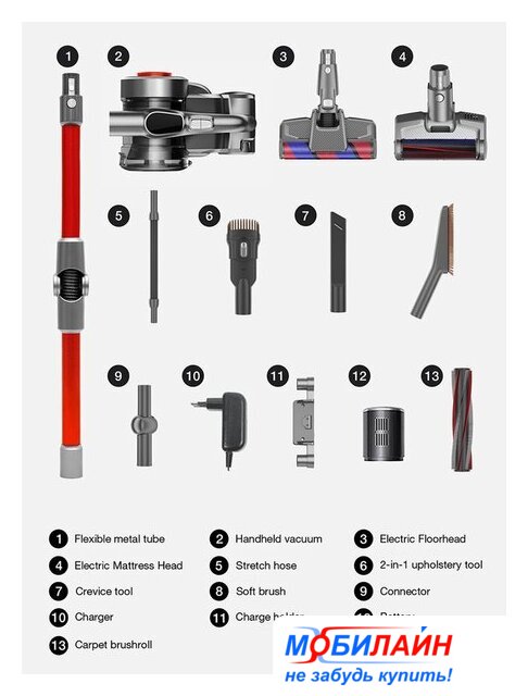 вертикальный 2-в-1, аккумулятор, потребление: 425 Вт, регулировка мощности, турбощетка, док-станция без зарядки, шум 80 дБ
