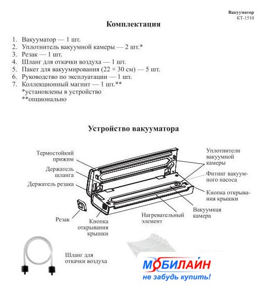 бескамерный, 95 Вт, пакет/пленка, рулон/контейнер, черный