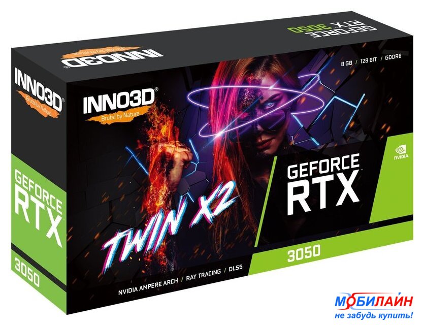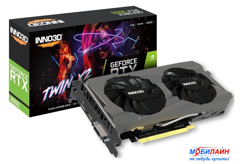 8 ГБ GDDR6 LHR, 1550 МГц / 1777 МГц, 2560sp, 20 RT-ядер, трассировка лучей, 128 бит, 2 слота, питание 6 pin, HDMI, DisplayPort, DVI