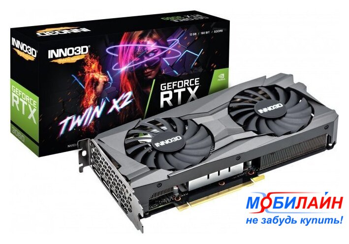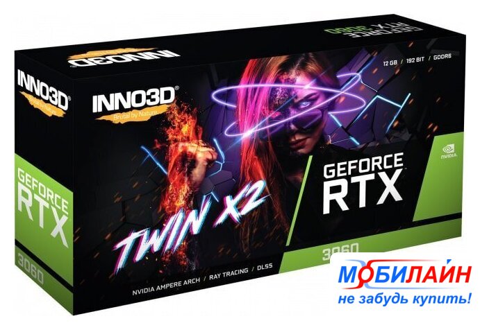 NVIDIA GeForce RTX 3060, базовая частота 1777 МГц, 3584sp, частота памяти 15000 МГц, 192 бит, доп. питание: 8 pin, 2.2 слота, HDMI, DisplayPort