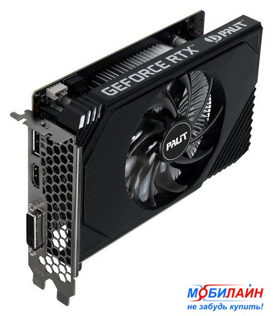 6 ГБ GDDR6 LHR, 1507 МГц / 1537 МГц, 2304sp, 20 RT-ядер, трассировка лучей, 96 бит, 2 слота, питание нет, HDMI, DisplayPort, DVI