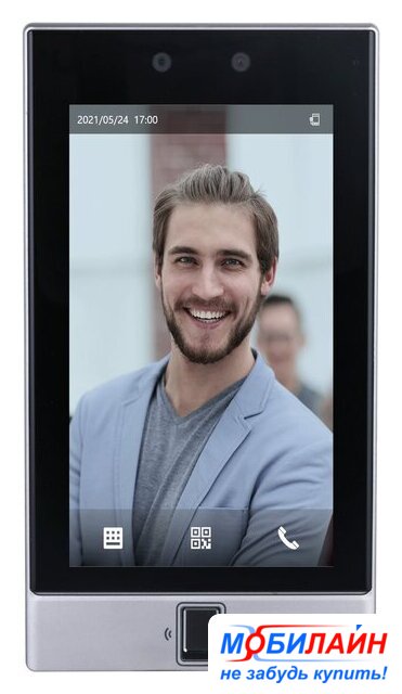 биометрический терминал, экран 4.3", 800x480, громкая связь, кнопочное/с мобильного телефона управление, запись видео, угол обзора панели 95°, ИК-подсветка, бесконтактный доступ