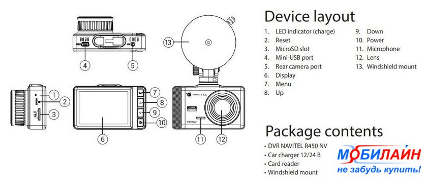 Комплектация | - крепление на лобовое стекло- автомобильное зарядное устройство- картридер- салфетка из микрофибры- документация |