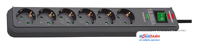 блок розеток, 3 м, 6 розеток евро с заземлением