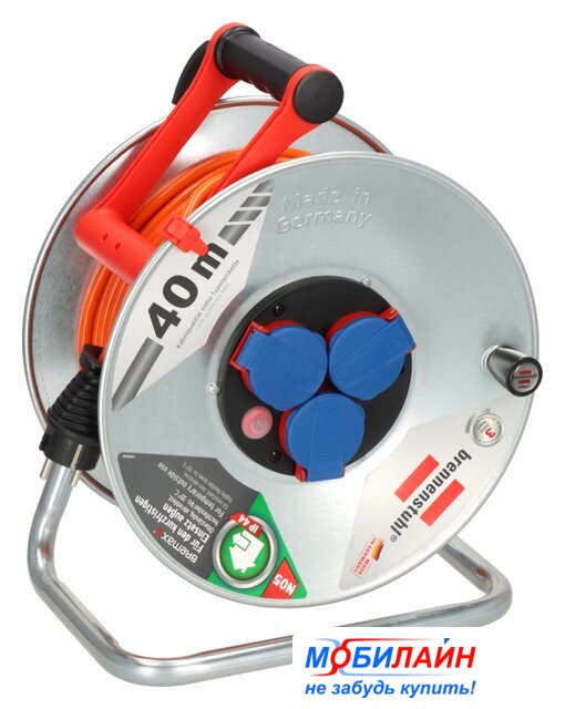 удлинитель на катушке, кабель 40 м, 3 розетки Schuko (евро с заземлением) / 3300 Вт