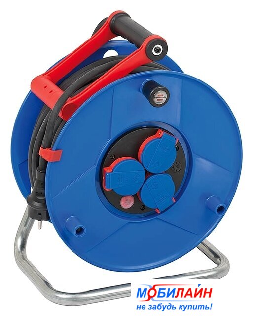 удлинитель на катушке, кабель 50 м, 3 розетки Schuko (евро с заземлением)