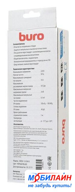 сетевой фильтр, 6 розеток евро с заземлением/евро без заземления