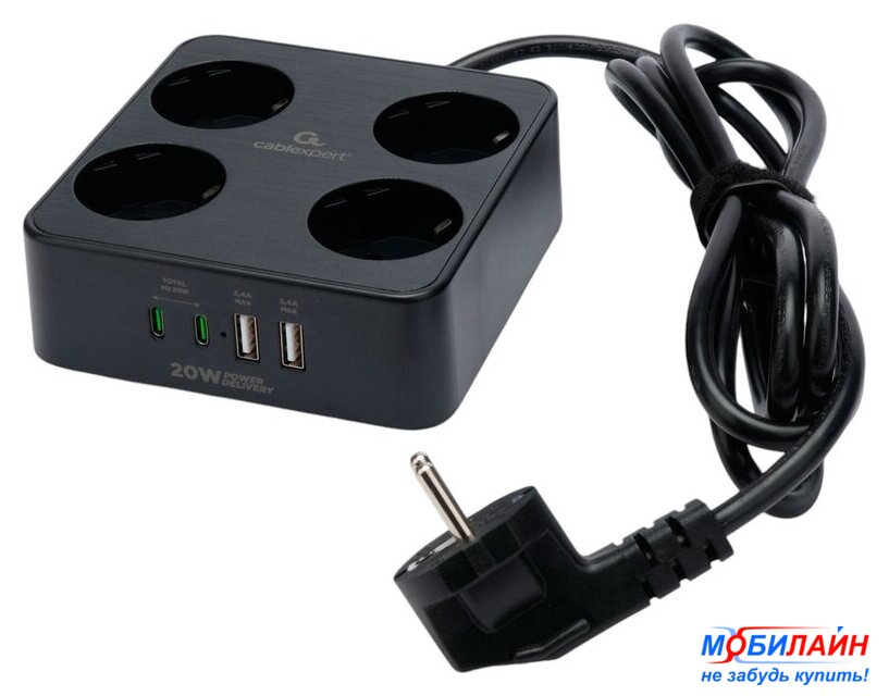 сетевой фильтр, кабель 2 м, 4 розетки Schuko (евро с заземлением) / 2500 Вт/USB