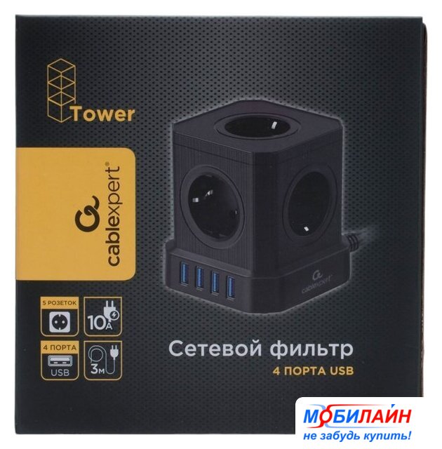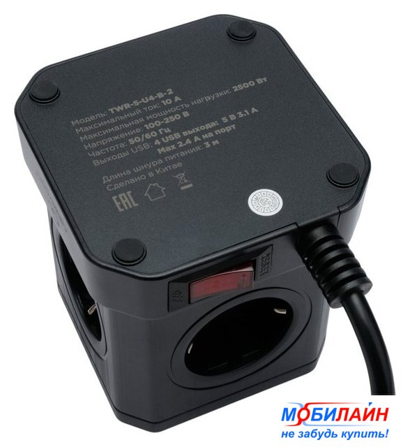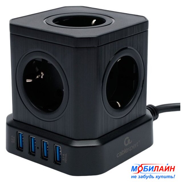 сетевой фильтр, кабель 3 м, 4 розетки Schuko (евро с заземлением) / 2500 Вт/USB