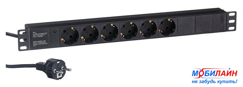 блок розеток, кабель 2.5 м, 6 розеток Schuko (евро с заземлением)