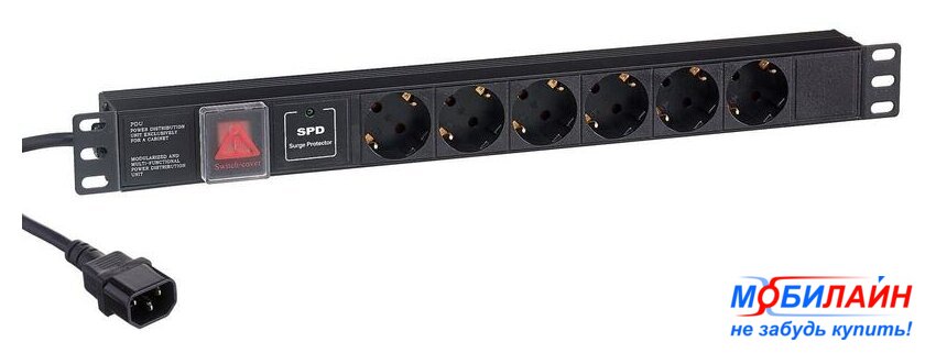 блок розеток, 6 розеток Schuko (евро с заземлением)