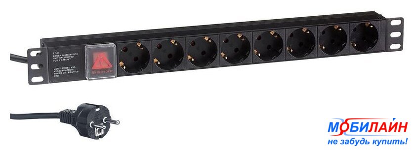 блок розеток, кабель 3 м, 8 розеток Schuko (евро с заземлением)