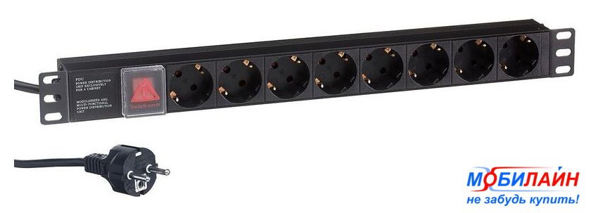 блок розеток, 8 розеток Schuko (евро с заземлением)