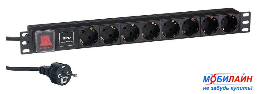 блок распределения питания, 9 розеток евро с заземлением / 3250 Вт