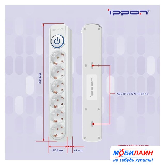 сетевой фильтр, кабель 1.8 м, 6 розеток Schuko (евро с заземлением), 3500 VA