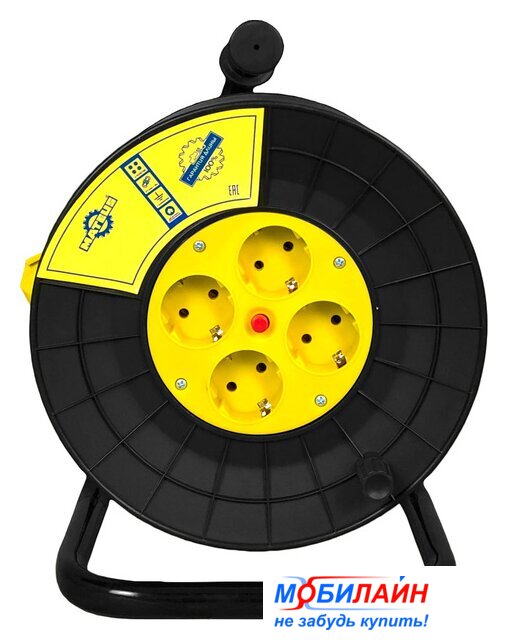 удлинитель на катушке, кабель 50 м, 4 розетки Schuko (евро с заземлением) / 3300 Вт
