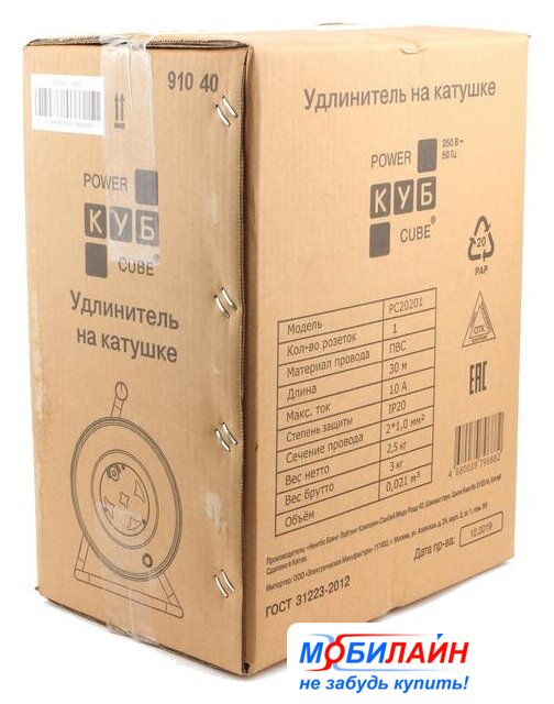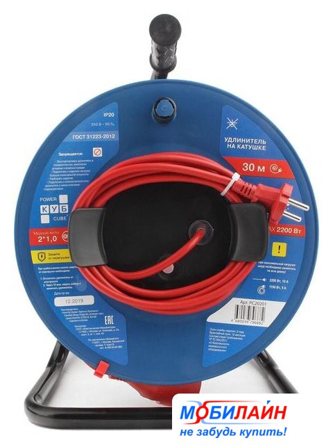 удлинитель, кабель 40 м, 4 розетки Schuko (евро с заземлением) / 3300 Вт