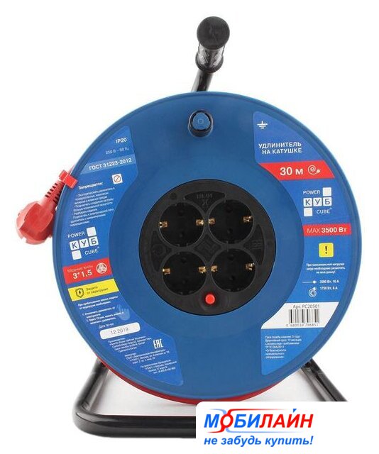 удлинитель, 25 м, 1 розетка евро с заземлением