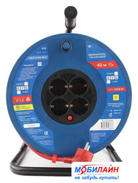 удлинитель на катушке, кабель 50 м, 4 розетки Schuko (евро с заземлением) / 3500 Вт