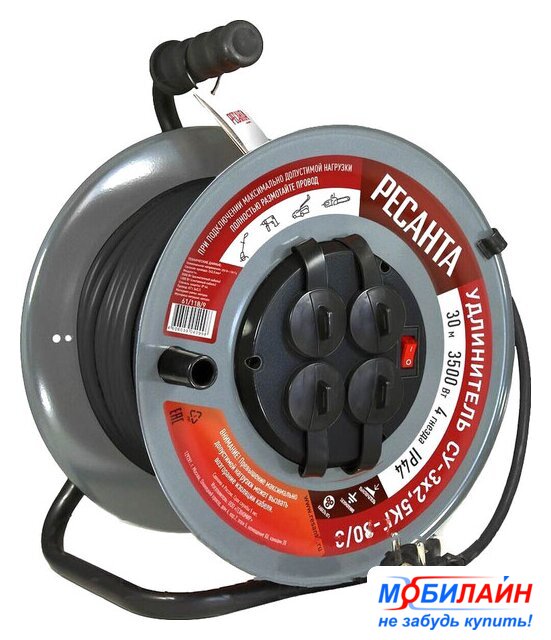 удлинитель, кабель 50 м, 4 розетки / 3500 Вт