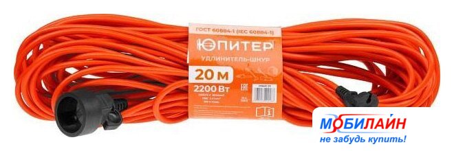 удлинитель, 30 м, 1 розетка евро без заземления / 2200 Вт