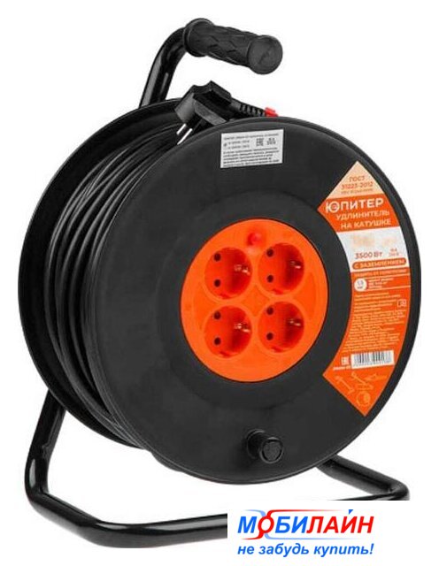 удлинитель на катушке, кабель 50 м, 4 розетки Schuko (евро без заземления) / 3500 Вт