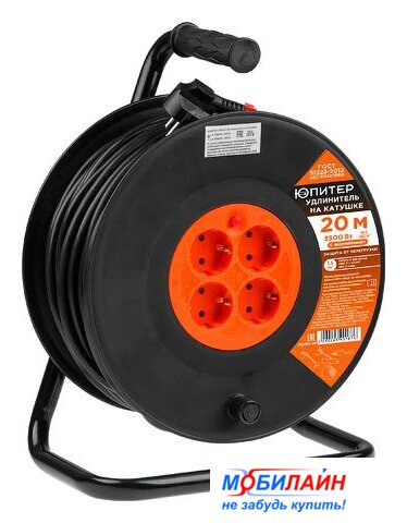 удлинитель на катушке, кабель 40 м, 4 розетки Schuko (евро с заземлением) / 3500 Вт