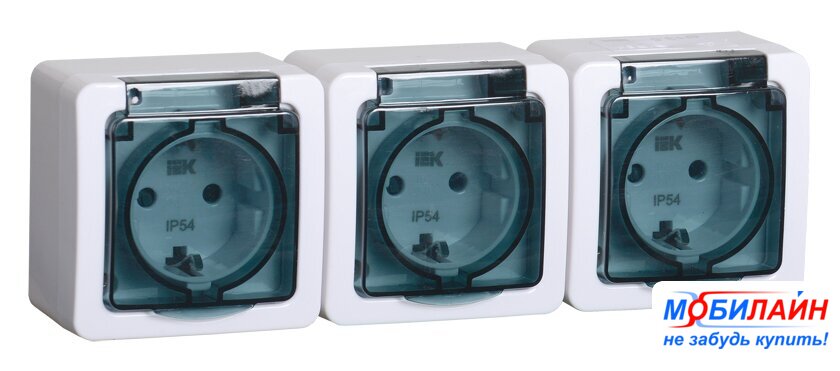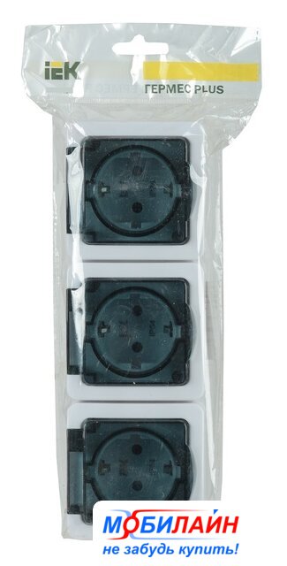 розетка промышленная тройная, накладной монтаж, с заземлением, пластик, цвет накладки: черный
