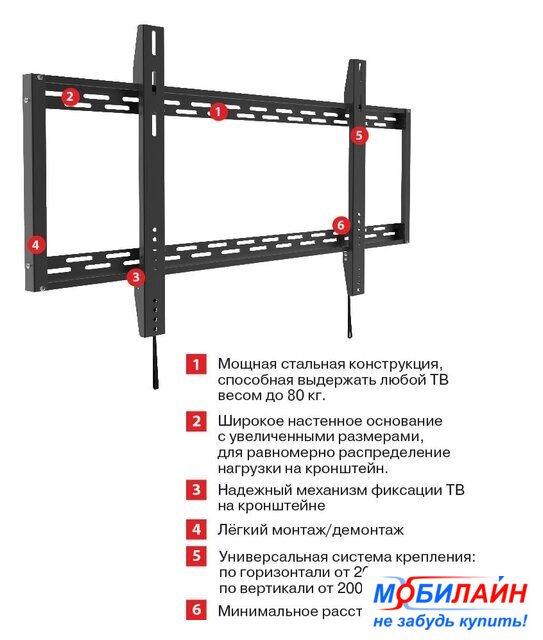настенный кронштейн для ЖК-телевизора 40-85", цвет черный