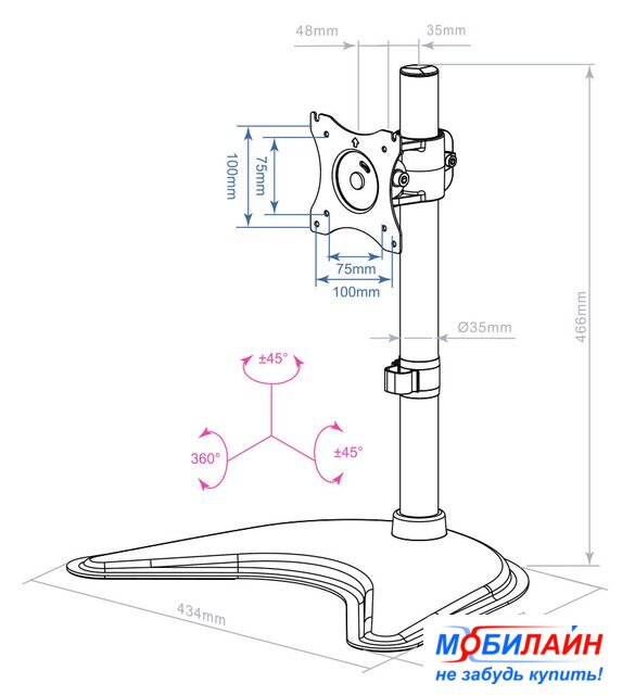 настольный кронштейн для ЖК-монитора 17-27", наклон 50°, поворот 360°, цвет черный