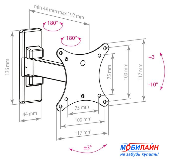 | Расстояние от стены (потолка) | 44 — 192 мм |