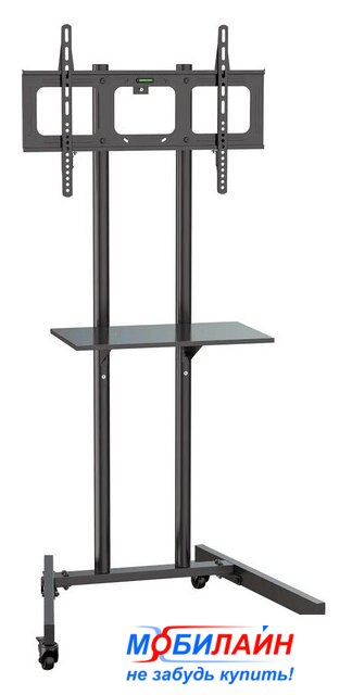 для ЖК-телевизоров/для проигрывателей/для цифровых приставок, 32-55", напольный, с регулировкой высоты, с полкой, наклон 10°, цвет черный