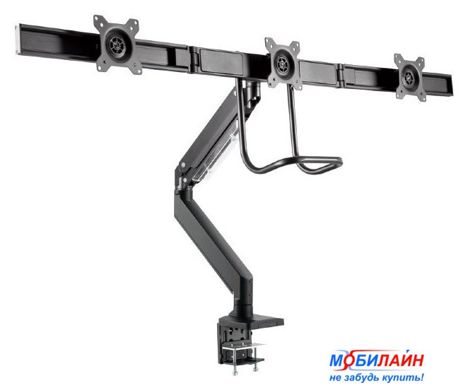 для мониторов, 13-34", 2 монитора, настольный, поворотный, с регулировкой высоты, кабель-канал, струбцинное крепление, наклон 45°, поворот 180°, цвет черный