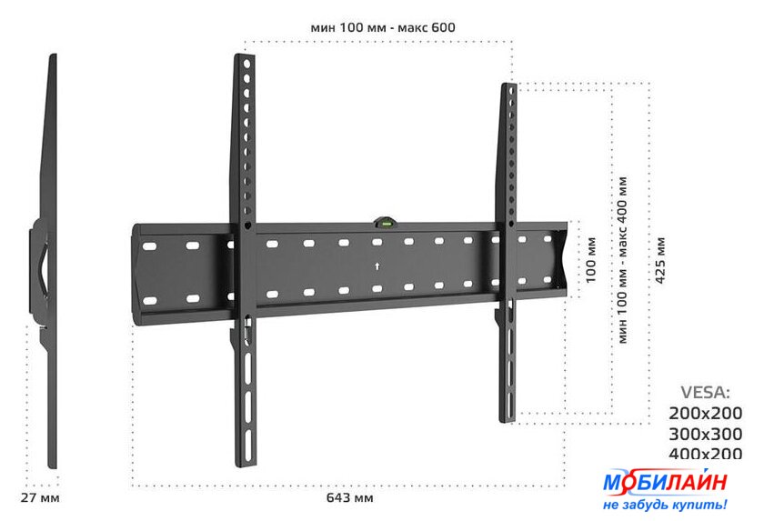 Совместимость с креплением VESA | 200x200, 300x300, 400x200, 400x400, 600x400 |