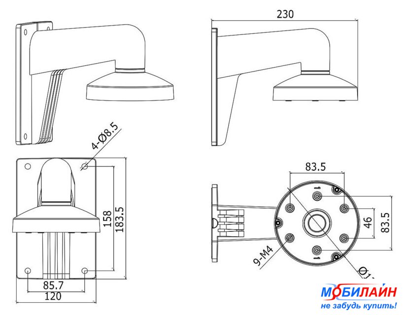 потолочный кронштейн для камер видеонаблюдения, цвет белый