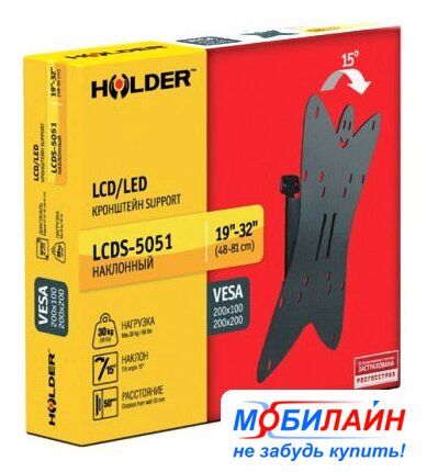 настенный кронштейн для ЖК-телевизора 10-26", наклон 15°, цвет черный