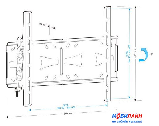 настенный кронштейн для ЖК-телевизора 10-40", наклон 15°, цвет черный