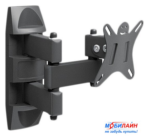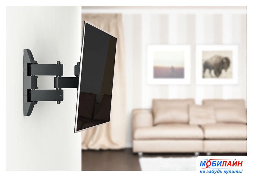 для ЖК-телевизоров, 32-55", настенный, поворотный, кабель-канал, наклон 25°, поворот 90°, цвет черный