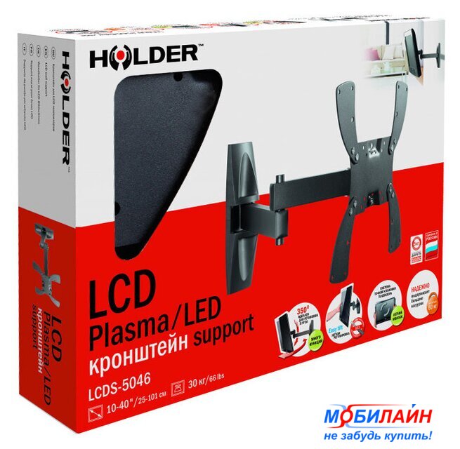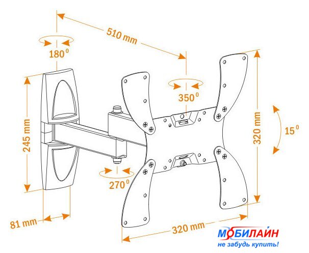настенный кронштейн для ЖК-телевизора/для плазменного телевизора 19-32", наклон 25°, поворот 350°, цвет черный