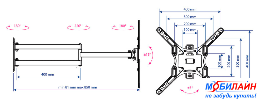 | Расстояние от стены (потолка) | 81 — 850 мм |