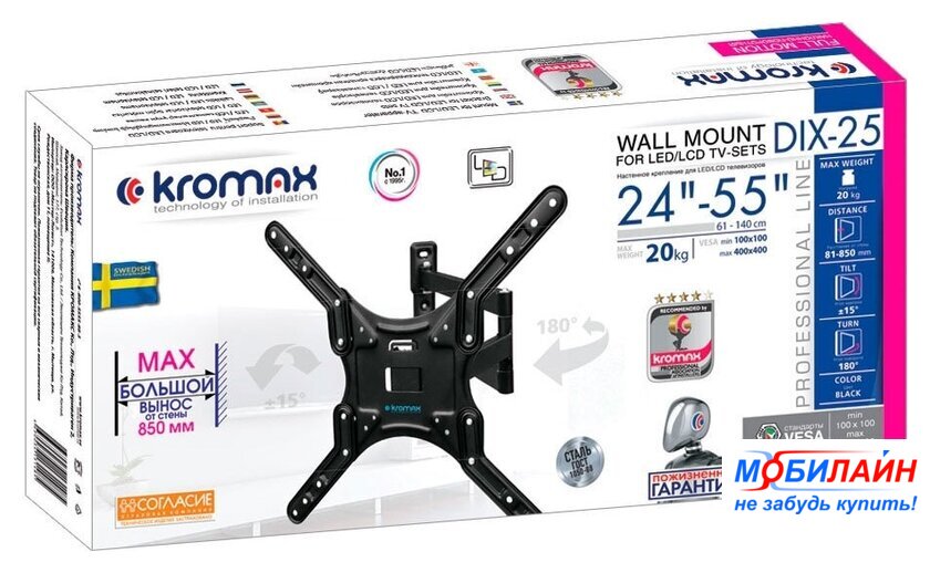 | Совместим с телевизорами | 24 — 55 " |