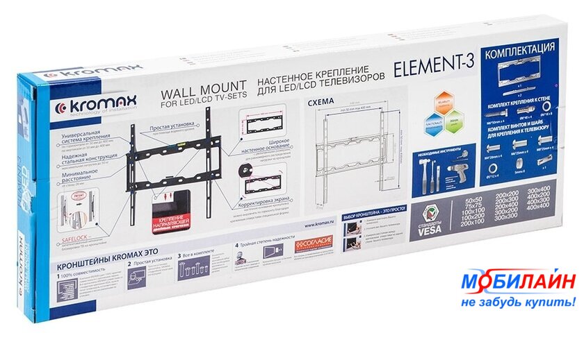 | Совместимость с креплением VESA | 50x50, 75x75, 100x100, 200x100, 200x200, 200x300, 200x400, 300x200, 400x200, 300x300, 400x400 |