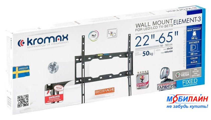 настенный кронштейн для ЖК-телевизора 22-42", наклон 12°, поворот 180°, цвет черный